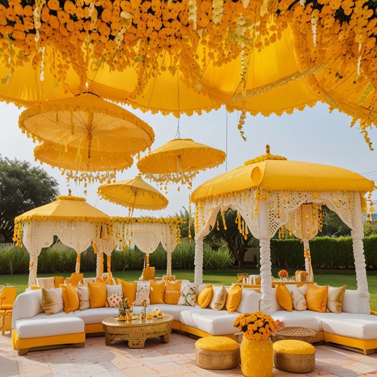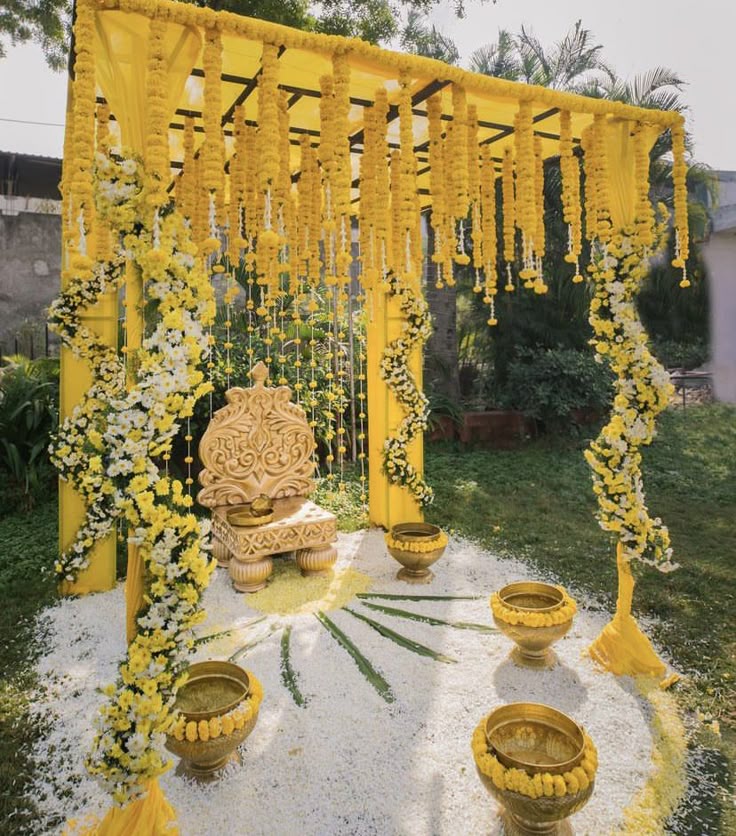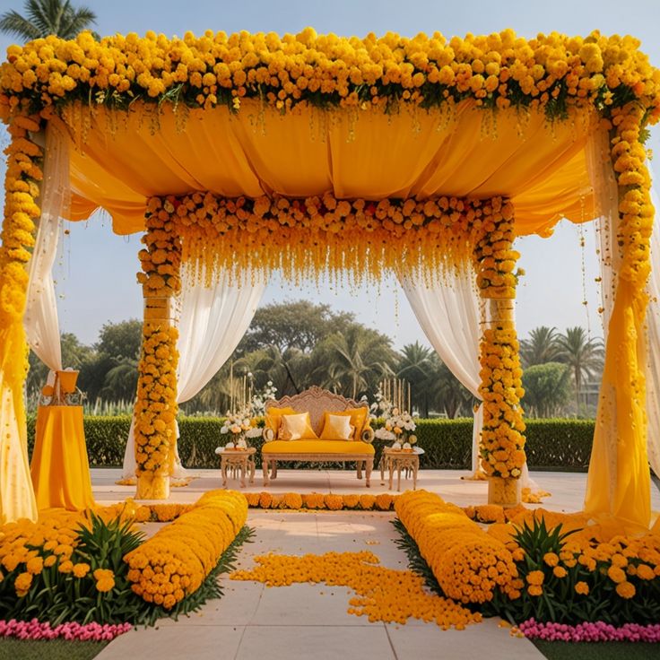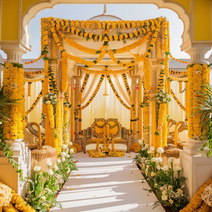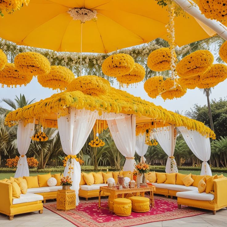 The Haldi ceremony is a joyful and auspicious pre-wedding ritual celebrated in Indian weddings, typically held a day before the wedding. In this tradition, a paste made of turmeric (haldi), sandalwood, rose water, and sometimes mustard oil is applied to the bride and groom by their family and close friends.